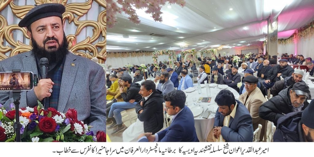 امیر عبدالقدیر اعوان شیخ سلسلہ نقشبندیہ اویسیہ کا برطانیہ مانچسٹر دارالعرفان میں سراجا منیرا کانفرس سے خطاب