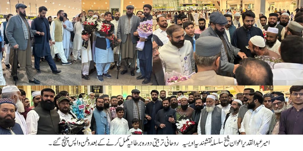 امیر عبدالقدیر اعوان شیخ سلسلہ نقشبندیہ اویسیہ روحانی تربیتی دورہ برطانیہ مکمل کرنے کے بعد وطن واپس پہنچ گئے
